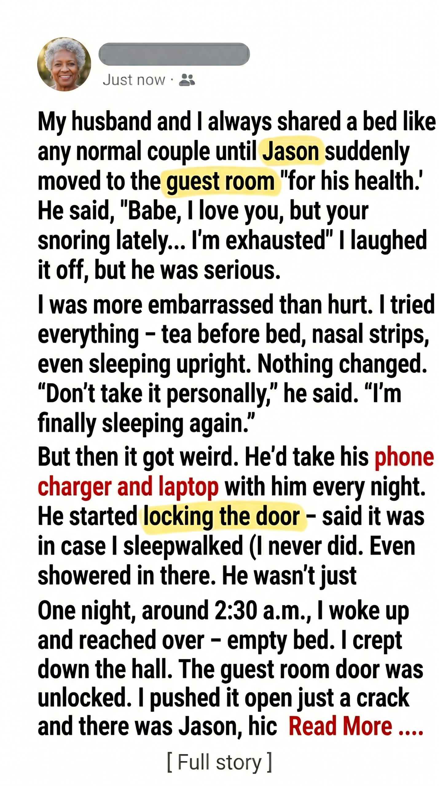 My husband and I always shared a bed like any normal couple until Jason suddenly moved to the guest room “for his health.”