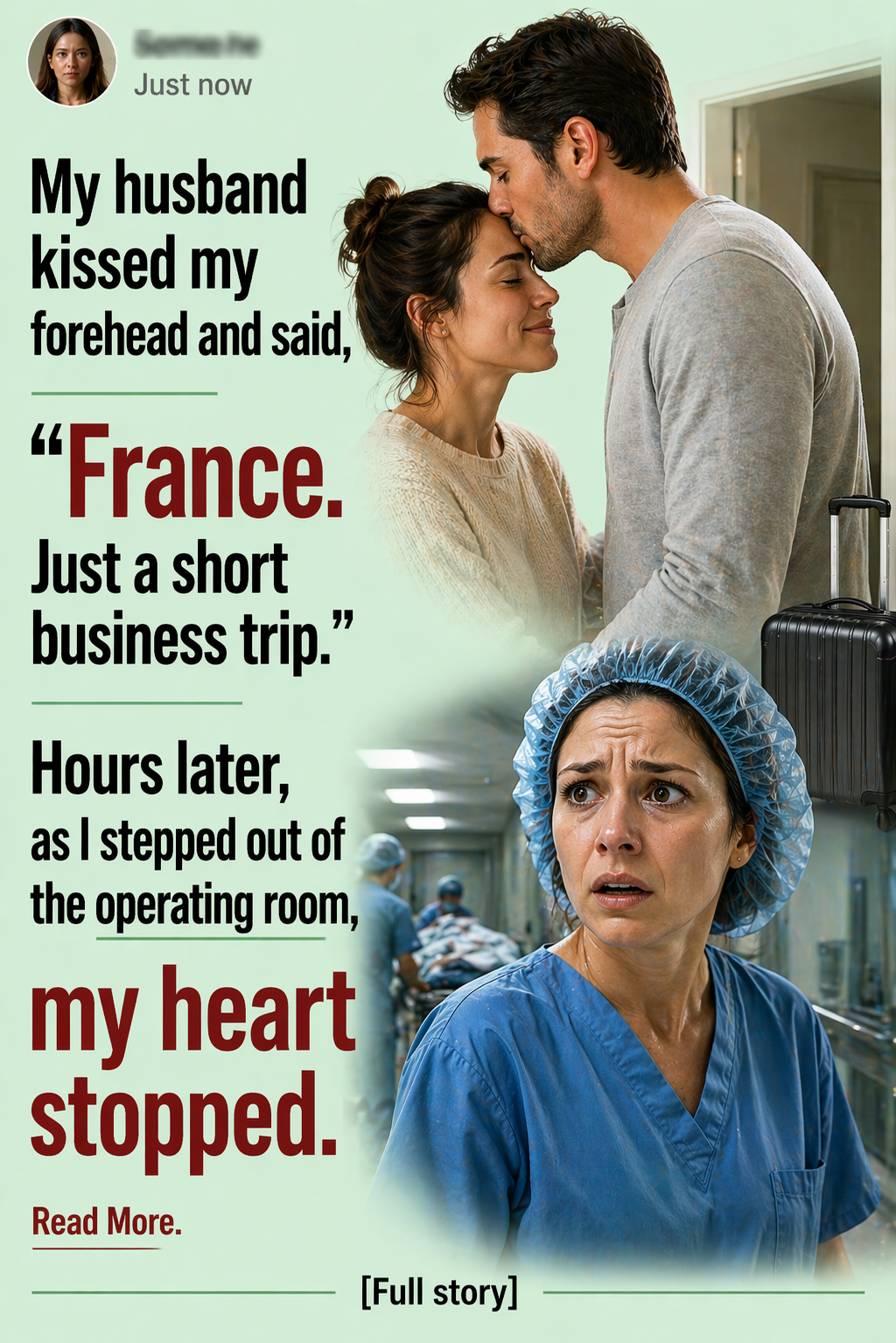 The morning Ethan kissed my forehead, I stood in our kitchen in navy-blue scrubs, trying to drink coffee that had already gone cold. He gave me the same easy smile that had carried us through twelve years of marriage and said, “France. Just a short business trip.” Then he picked up his suitcase, promised to text when he landed, and walked out the front door like a man with nothing to hide.