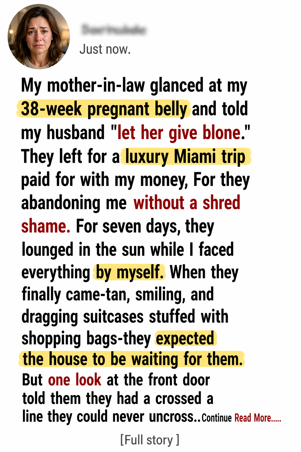 At thirty-eight weeks pregnant, swollen, exhausted, and moving through each day with the careful heaviness of someone carrying both life and fear at once, I stood in my own hallway and heard my mother-in-law tell my husband to “lock both deadbolts and let her give birth alone.” She did not whisper it. She did not veil it in passive-aggressive sweetness or concern. She said it plainly, with one manicured hand resting on the handle of her designer carry-on while her eyes flicked toward my stomach as if the baby inside me were a scheduling inconvenience. My husband did not laugh in disbelief or throw her out of the house or tell her that no mother worthy of the word would ever say such a thing to another woman. He adjusted his watch, glanced at the rideshare notification on his phone, and asked if I had remembered to forward the airport confirmation. Then the two of them left for a luxury Miami trip paid for with my money, abandoning me without embarrassment, without hesitation, and without even the courtesy of pretending this cruelty was anything but deliberate.