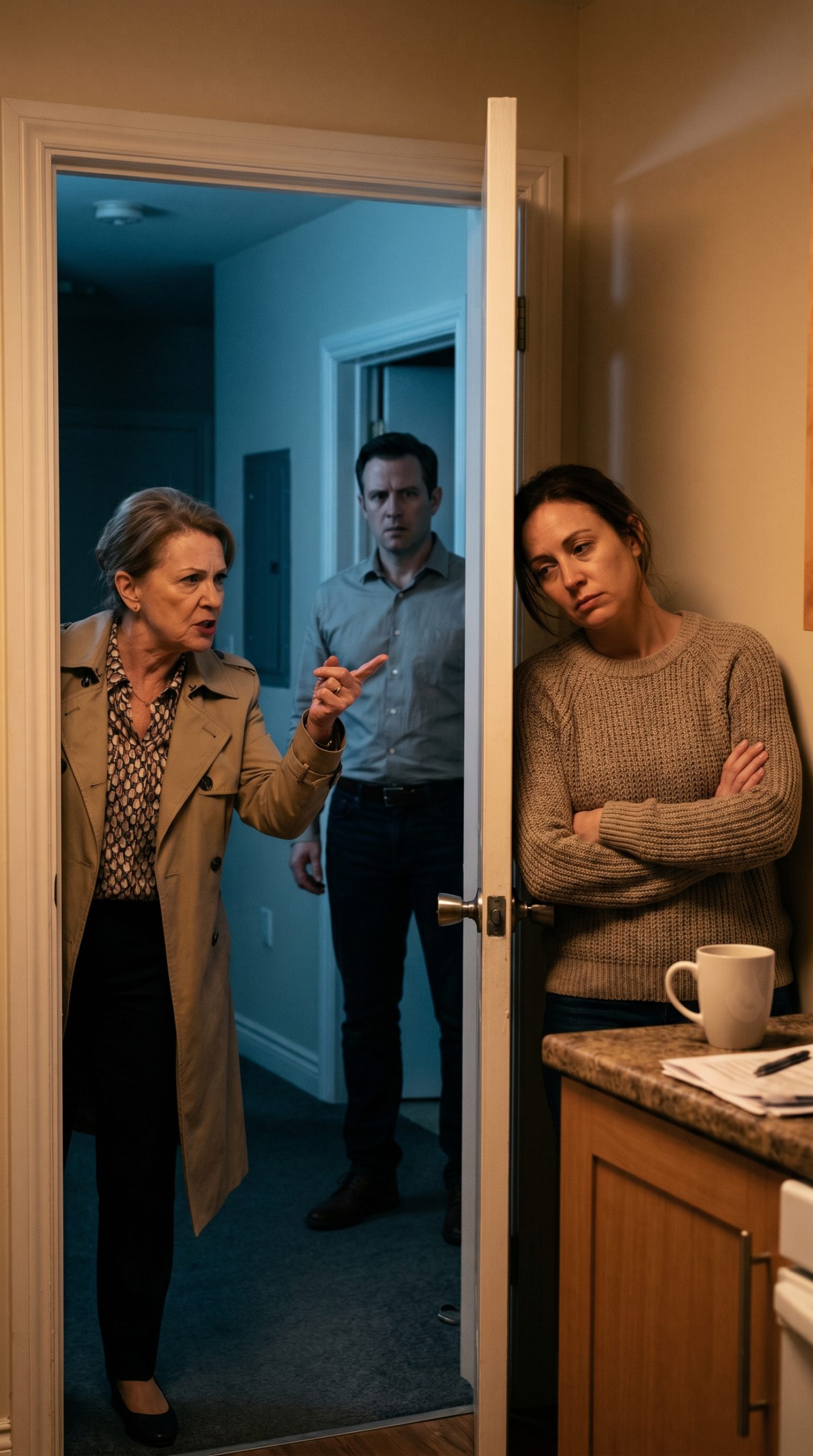 Through the peephole, I saw her—perfectly dressed, furious—and Anthony beside her, tense. Neighbors were already watching.