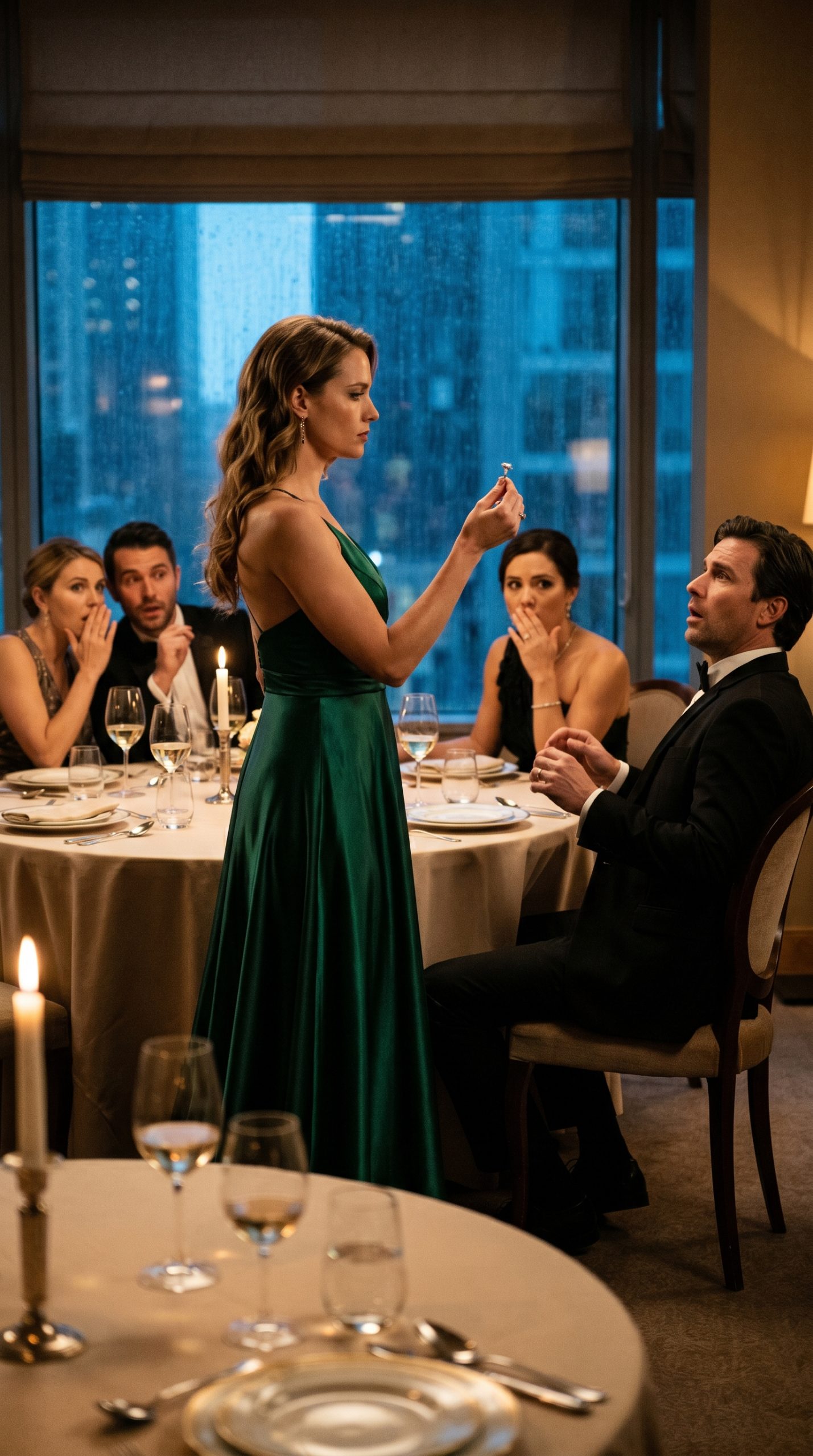 I removed my engagement ring slowly. No shaking. No drama. A large solitaire he had chosen carefully—more like a display than a symbol. I placed it beside his whiskey glass.