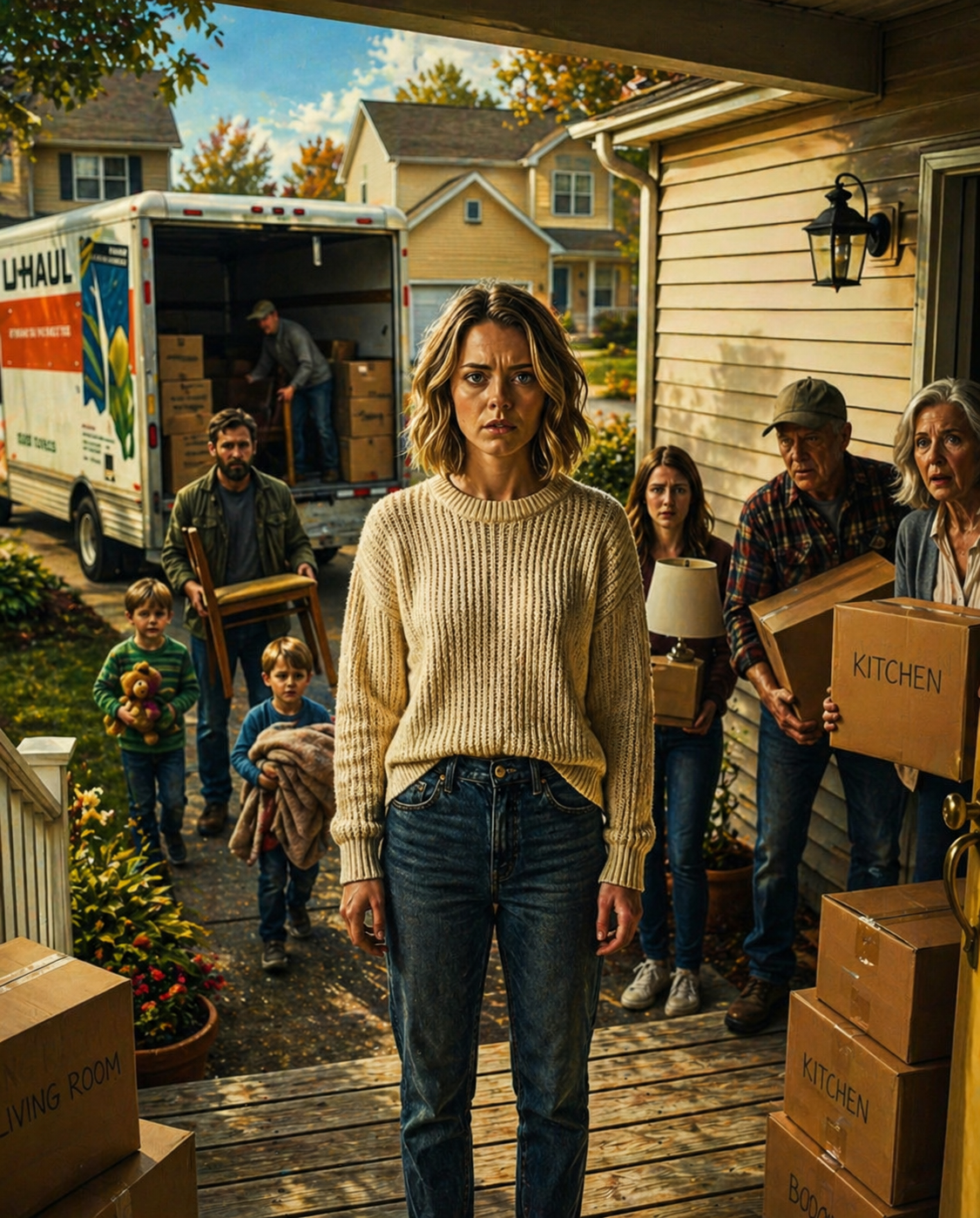 When I turned onto my street, the moving truck was still there. My front door stood wide open. I could see boxes piled in the entryway and a stranger’s sectional being pushed across my hardwood floor.