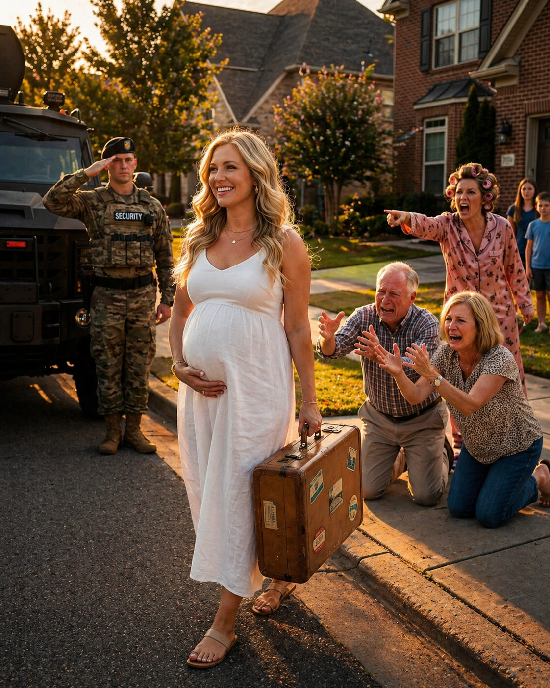 A few hours after my husband’s funeral, my mother looked at my eight-month pregnant stomach and told me my sister’s wealthy husband would be taking my place, so I could sleep in the freezing garage. My father rolled his eyes and said my crying was killing the mood. I just looked at them, smiled once, and said, “Okay.” They thought they were dealing with a broken widow. Then the next morning, armored military vehicles and a Special Forces detail arrived to take me out of that house, and every smug look on their faces disappeared.