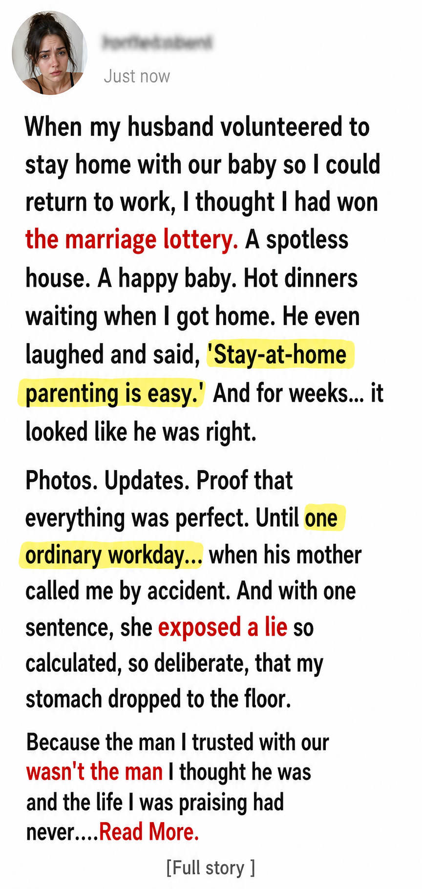 “So you left our baby with your mother… and pretended you were doing everything?”