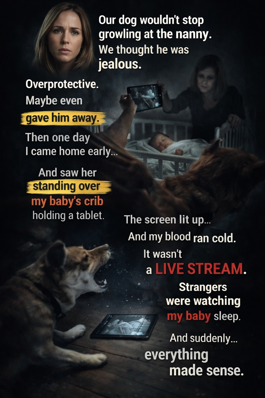 Looking back, there were breadcrumbs we stepped over. Once, I found the baby monitor angled slightly toward the nursery door instead of the crib. Another time, Beau nosed the tote bag and whined, fixated on the tablet until I redirected him. When I asked Claire about screen use, she laughed lightly. “Just white noise playlists, promise.” We wanted to believe her. We wanted peace. We told ourselves Beau was jealous, overstimulated, attached to his “new tiny person.” And still, he would not leave Zoey’s doorway.