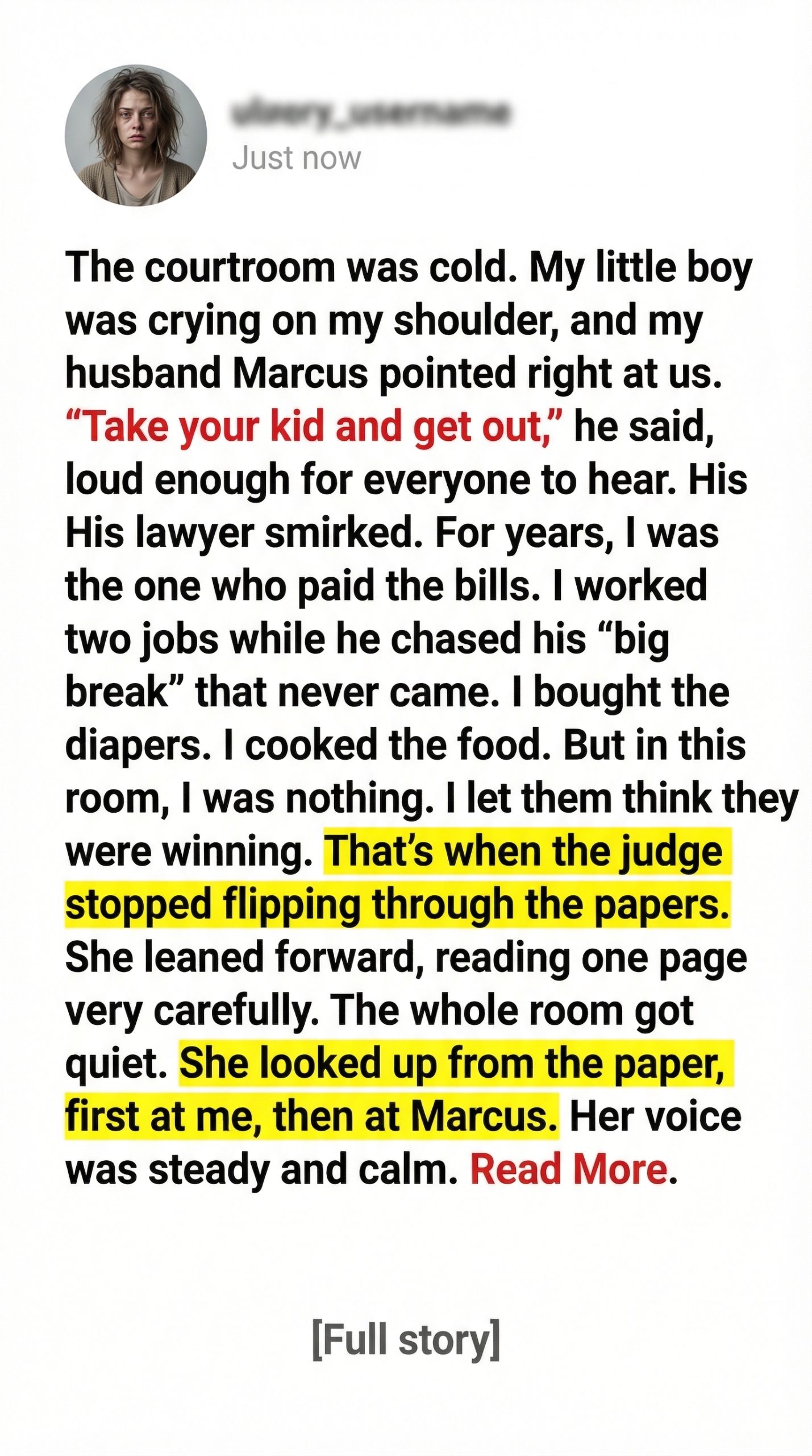 “And this…” she said, “…is the business account you claimed was supporting the family.”