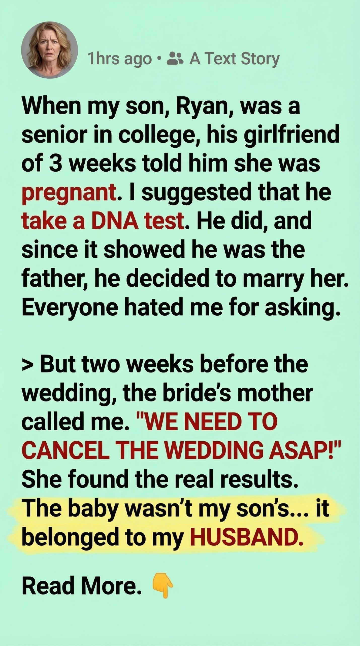 I turned the page. The real father wasn’t some stranger. It was Marcus, my own husband—Ryan’s father.