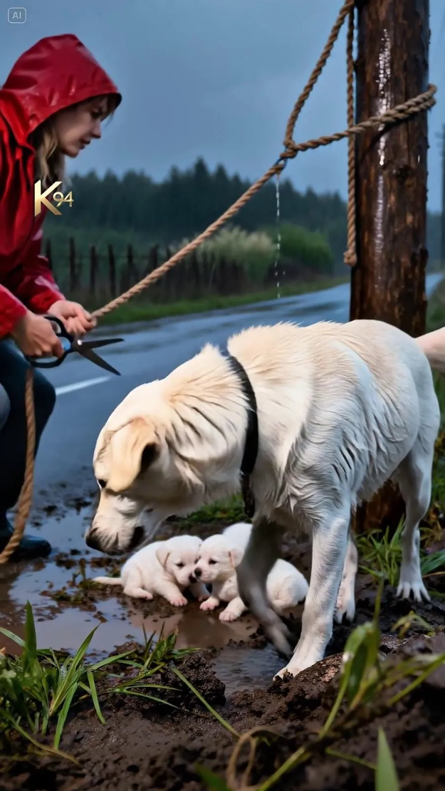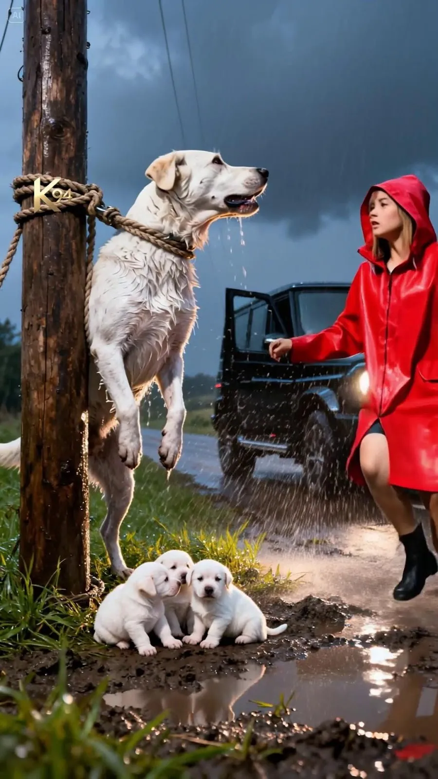 The puppy whimpered softly, searching for comfort. The mother responded with gentle licks, a silent promise that she would protect her child no matter the cost.