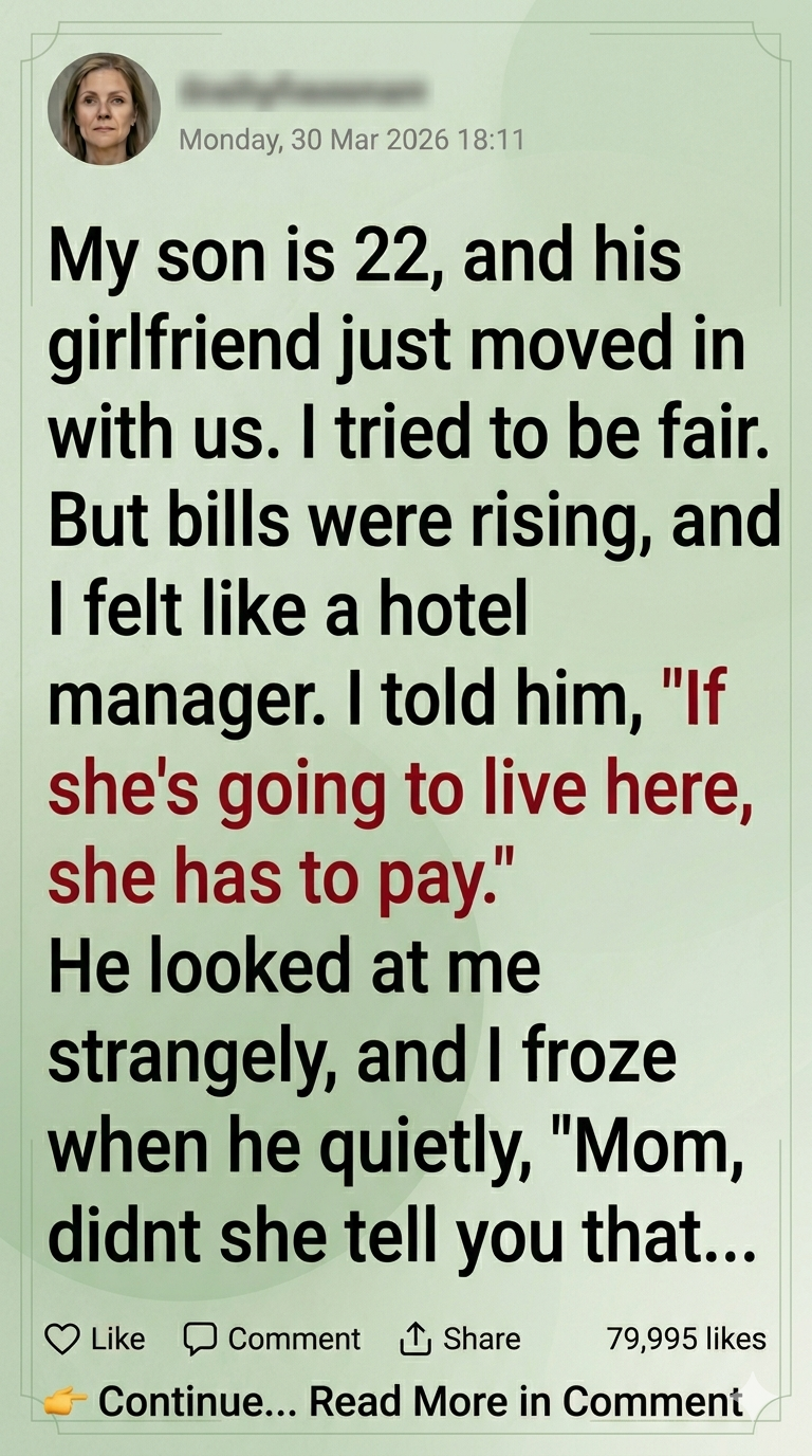 I’ve been raising my son alone since he was 5. He’s 22 now, and his girlfriend, Mia, started staying here full-time. At first, I tried to be fair. But bills were rising, and I felt like a hotel manager.