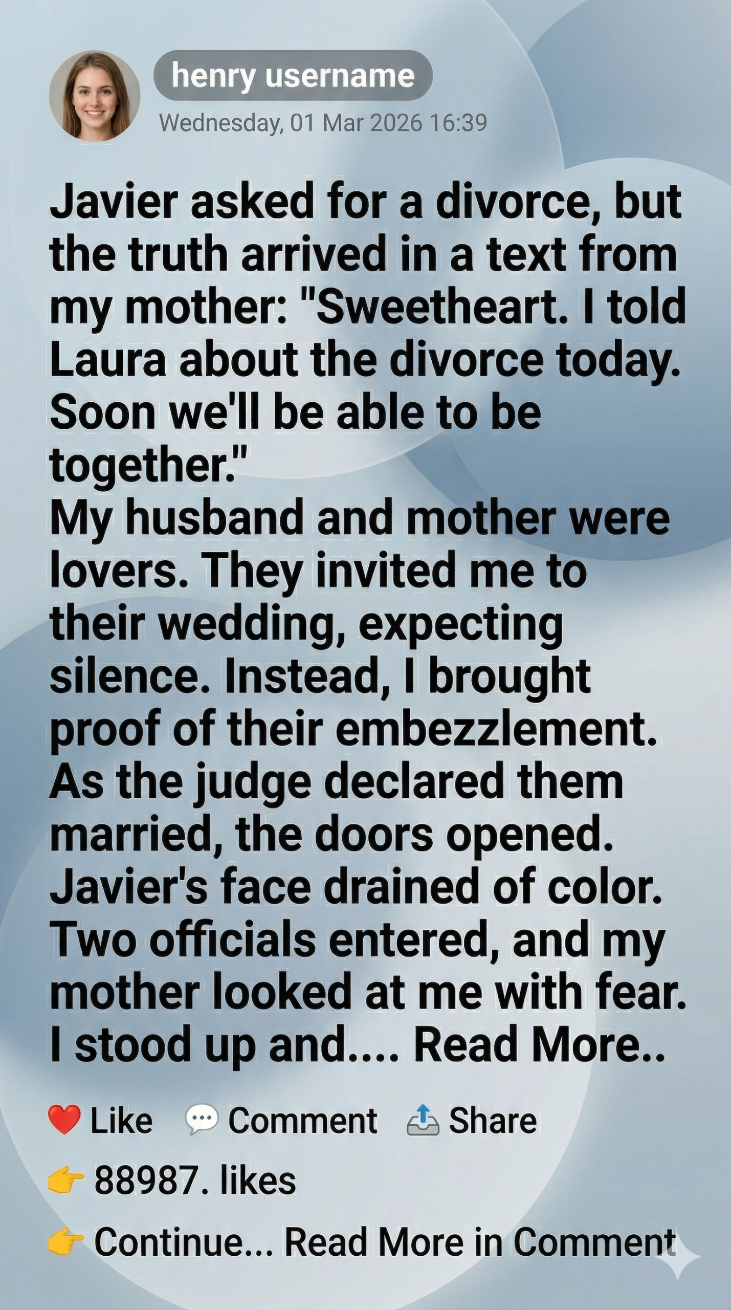 For a long moment, I couldn’t breathe. I read it again and again, convinced my mind was misinterpreting the words. But there was no misunderstanding. My mother and my husband were together. Not briefly. Not recently. Long enough to talk about “finally” being honest.