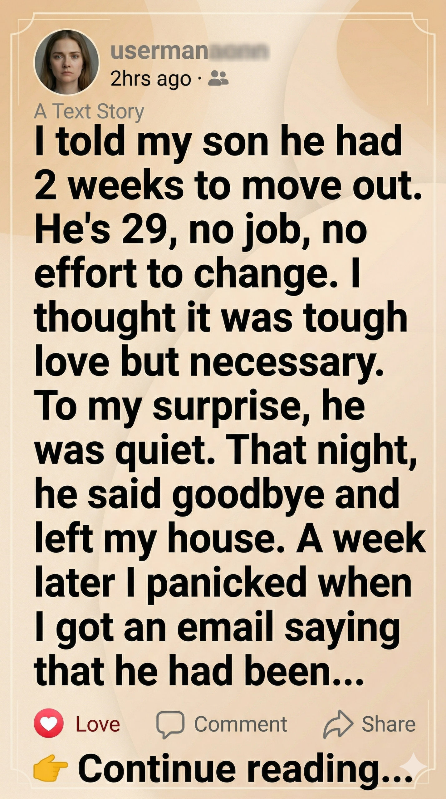 “You’re 29, Daniel. You have no job, no plan, and no effort to change. I thought letting you stay here would help you get back on your feet, but nothing is changing. I can’t keep supporting this. I won’t.”