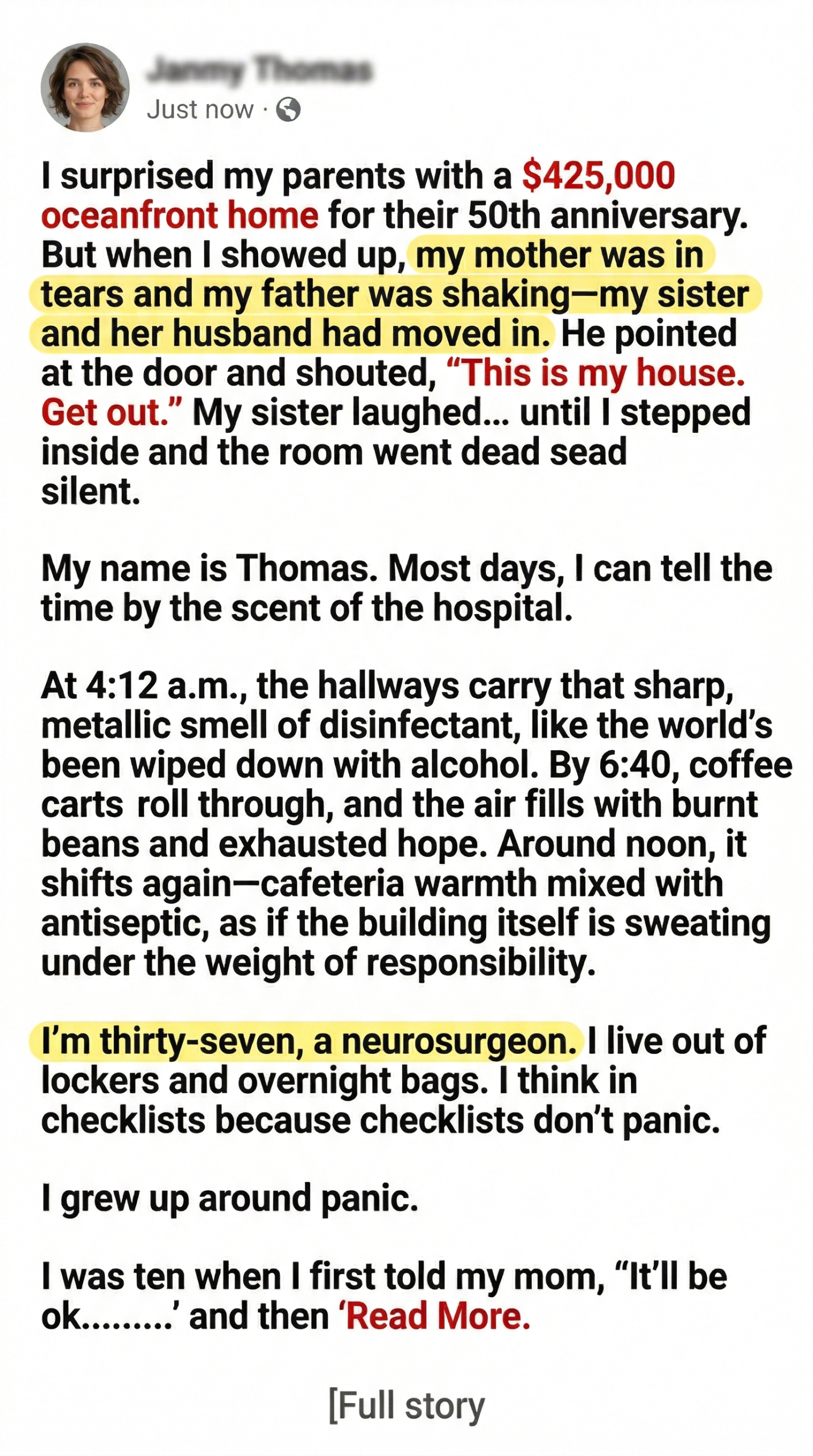Behind her, my father stood stiff.
