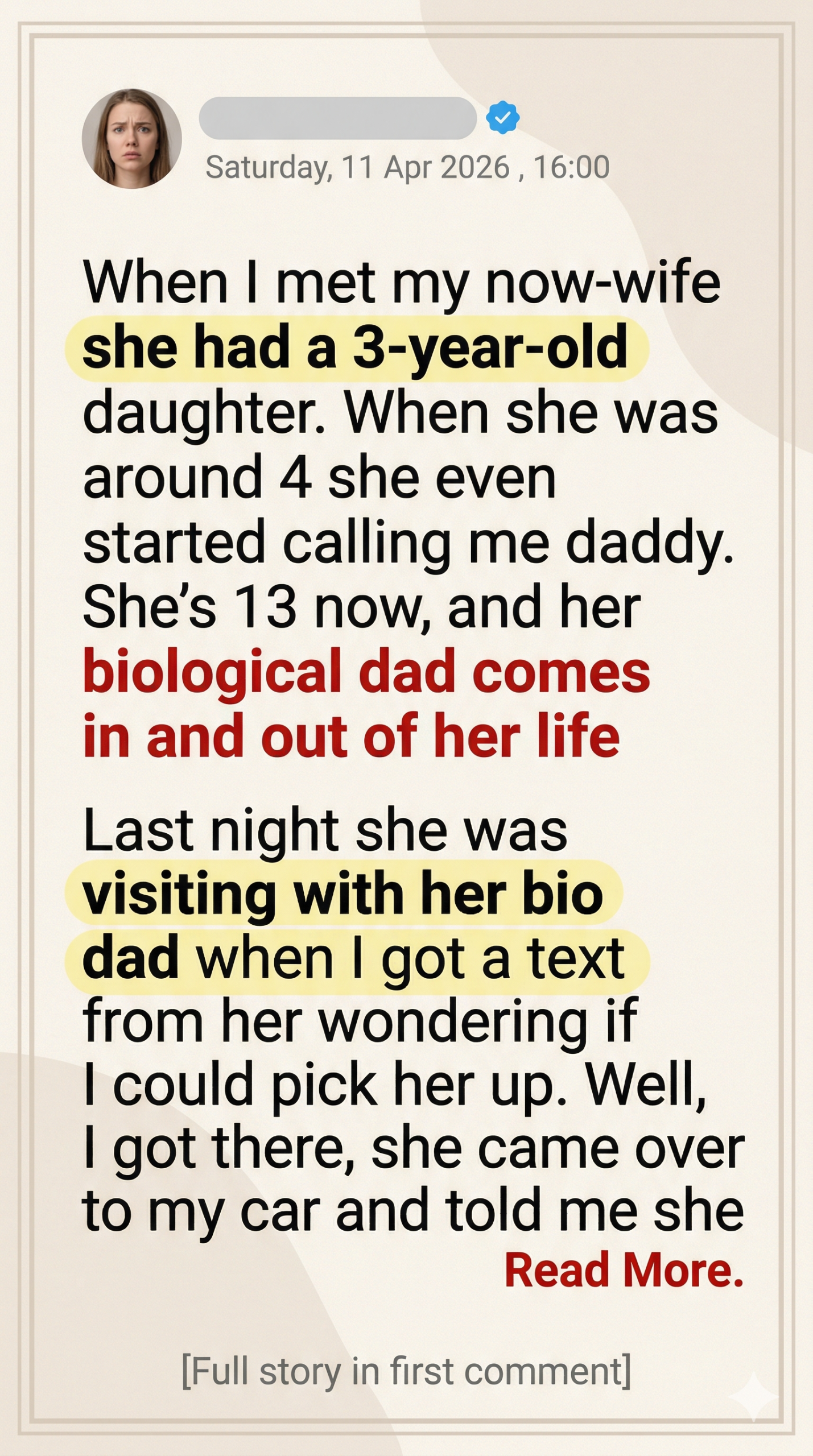Her biological dad, though… he’s always been in and out of her life. Promises, cancellations, long silences, then sudden reappearances like nothing ever happened.