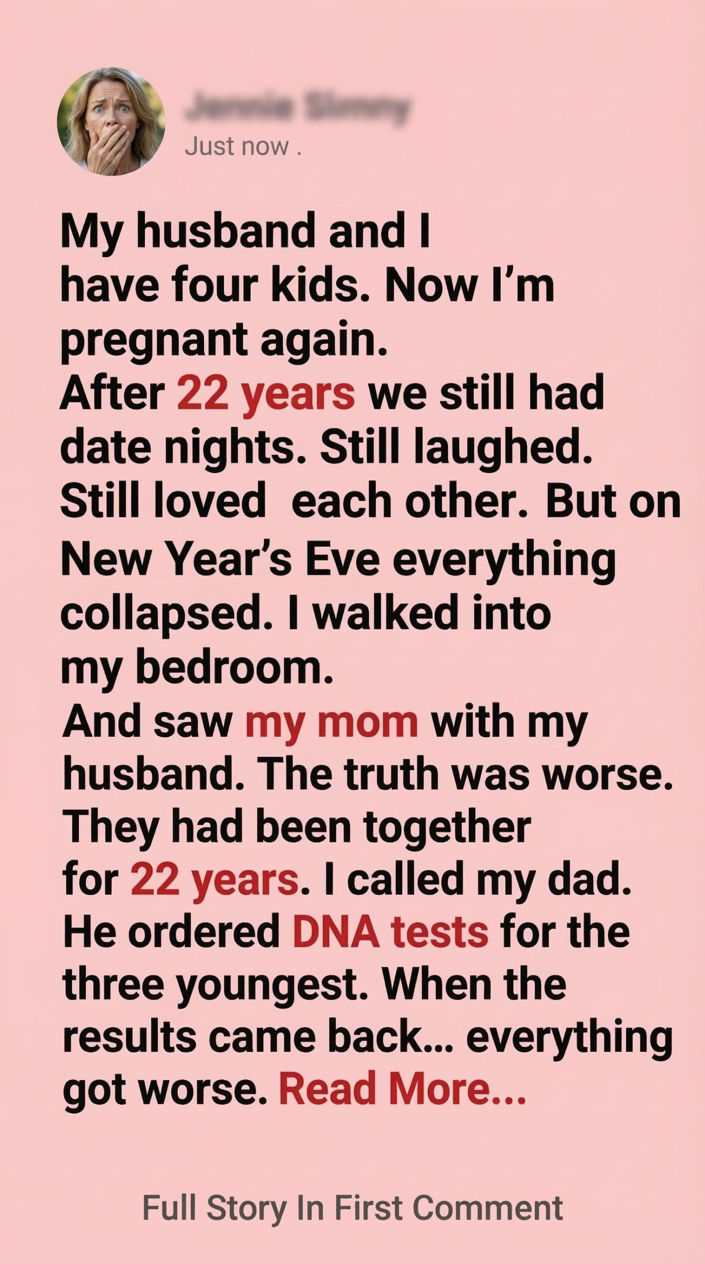 When I found out I was pregnant again, it was unexpected—but we laughed about it. Our youngest was already in middle school, but we figured life had one more surprise for us.