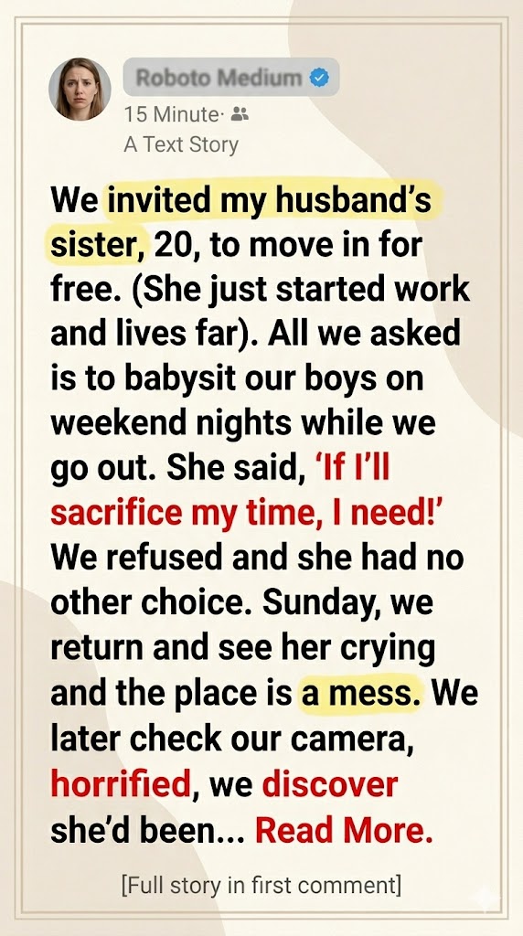 “No rent,” my husband told her. “Just focus on saving your money.”
