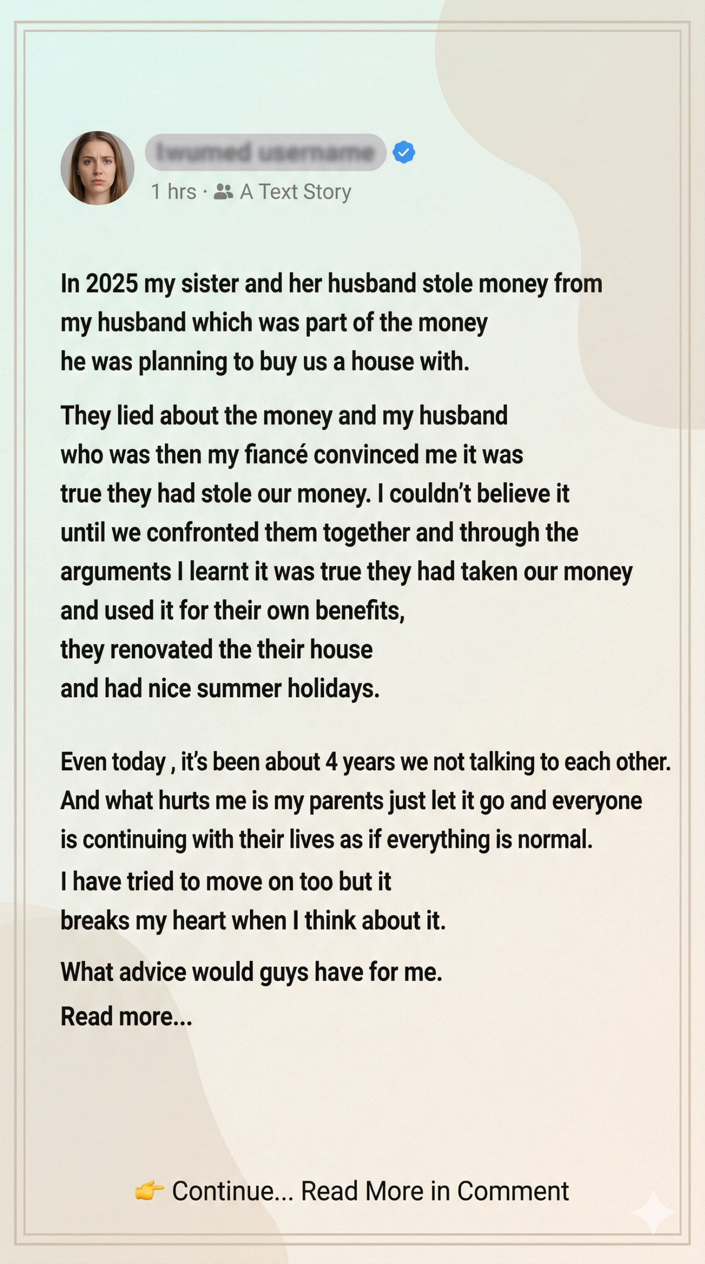 My sister and her husband stole money from us.