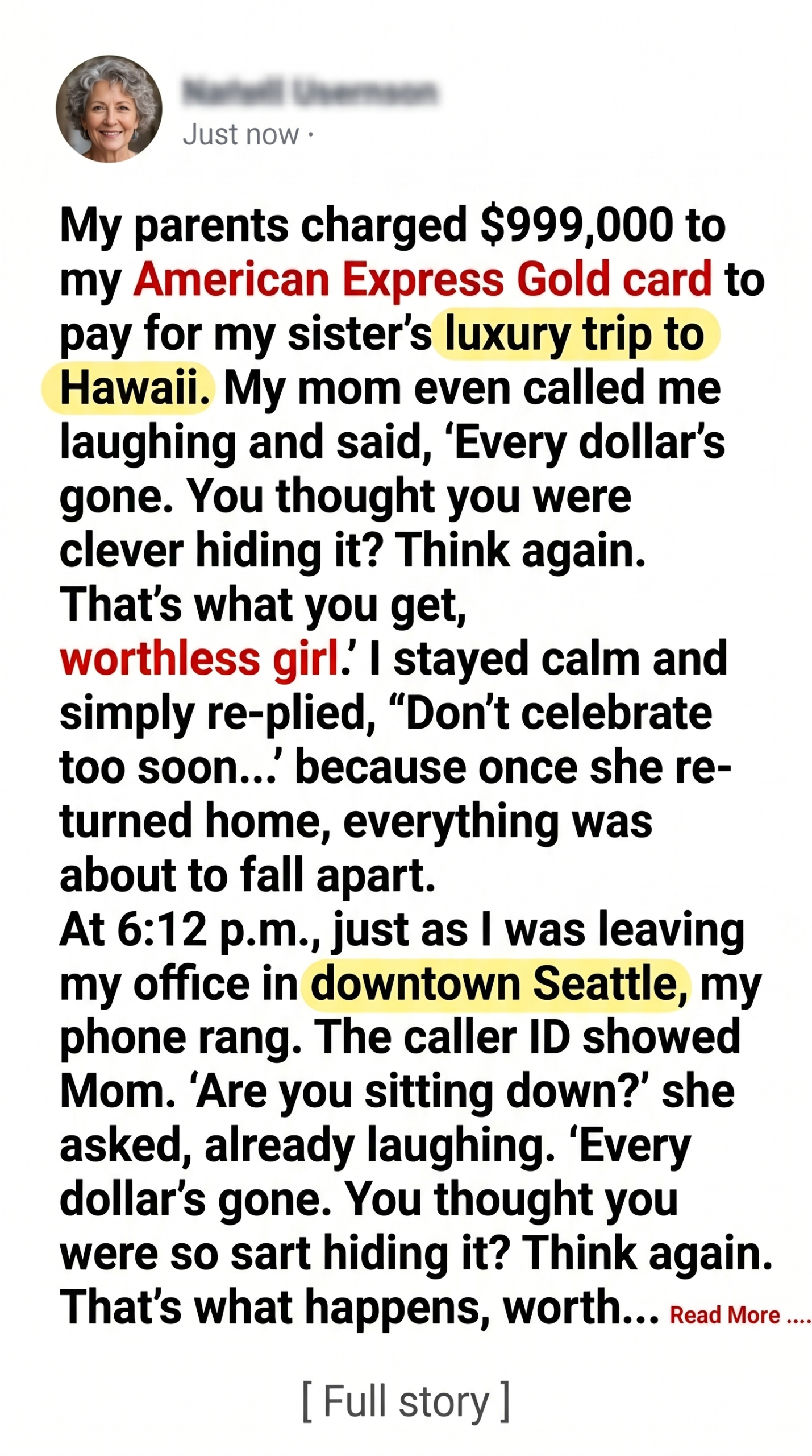 “Oh please,” she said. “Your sister deserved a real vacation. First class flights, five-star resort, private tours. Hawaii isn’t cheap.”